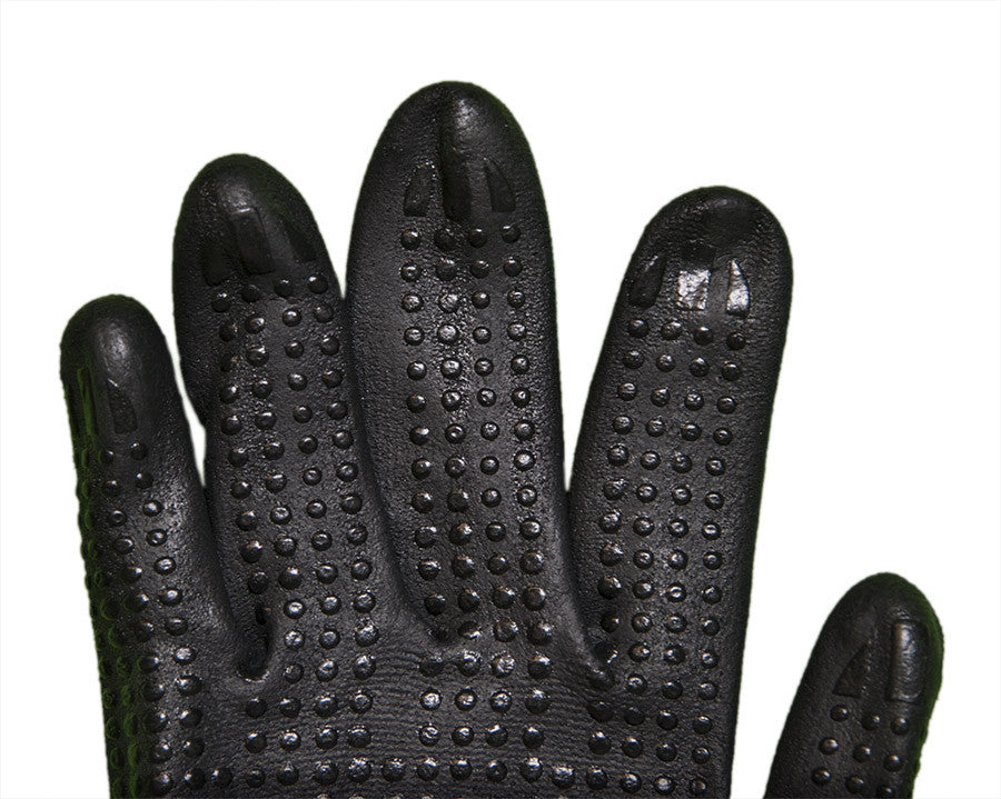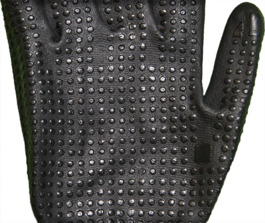 Description: 15 gauge grey nylon glove with black micro-foam nitrile dotted coating allows for excellent dexterity and superior grip.Ê